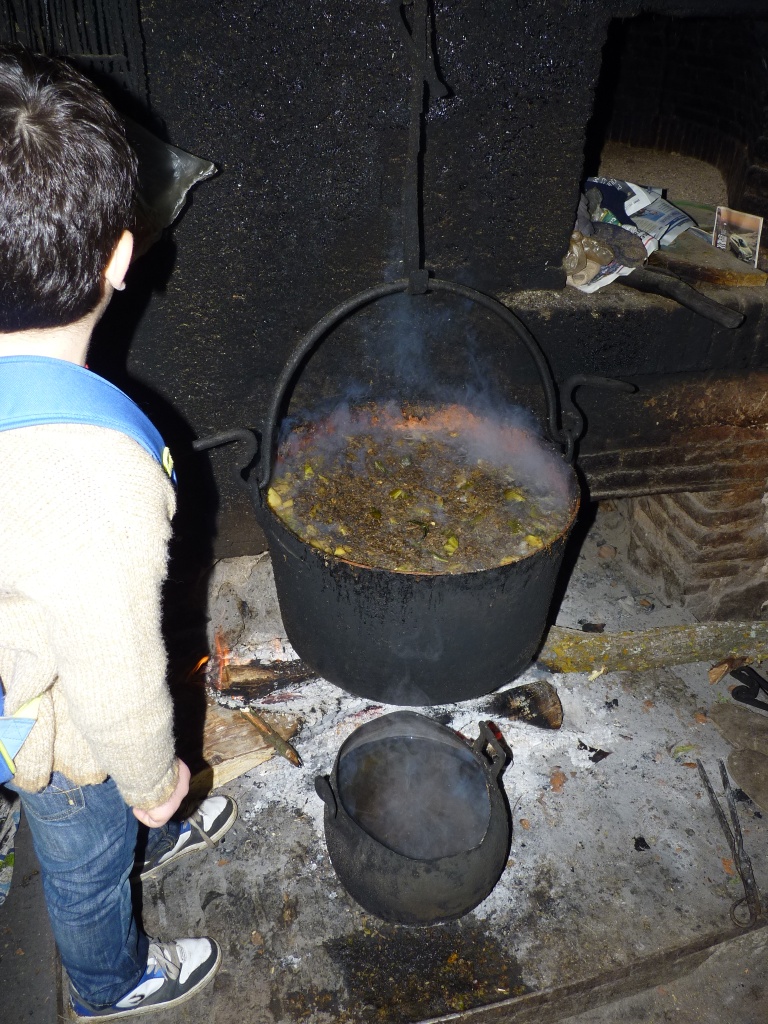 Hem entrat a l’estança de l’antic mas, on hem vist l’antic forn de pa, mentre en Josep preparava la calderada pels porcs, feta a partir de carbasses i pupa. Ens ha explicat que la pupa, són les restes de la remolatxa de sucre.